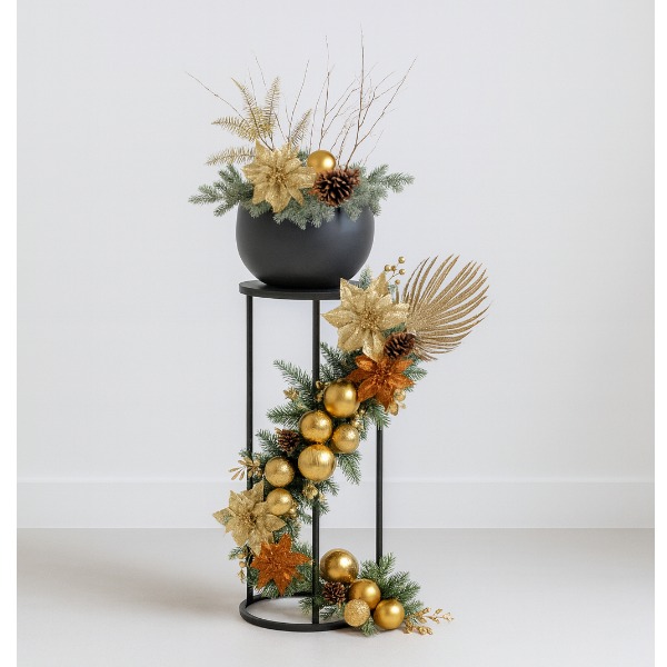 Creëer een magische kerstsfeer met dit unieke, handgemaakte kerststuk. Stijlvol uitgevoerd in warme rode en stoere zwarte tinten, maar op aanvraag ook beschikbaar in elke gewenste kleur, zodat het perfect aansluit bij uw interieur of thema. Dit feestelijke stuk brengt warmte en luxe in elke ruimte en is ideaal om de kerstsfeer tot leven te brengen. Foto is een impressie van wat te verwachten. De pot of hangers kunnen wat afwijken van de voorbeeldfoto door beschikbaarheid van de materialen